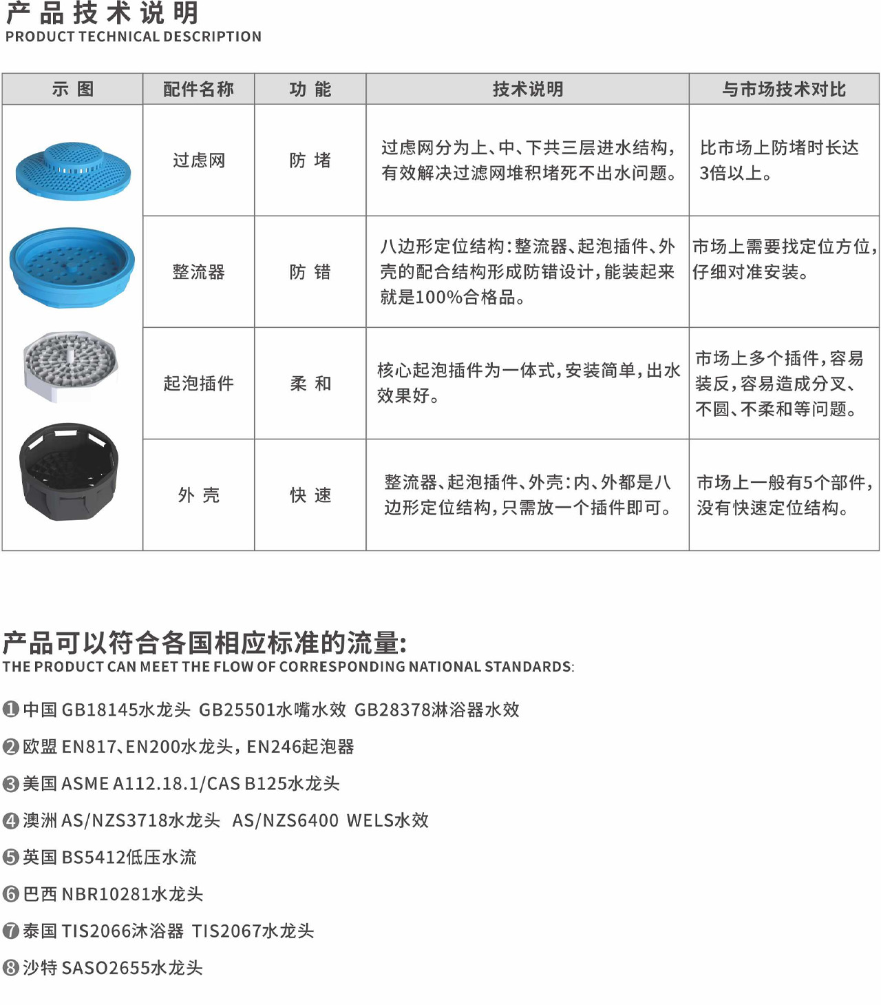 Our concept: ingenuity design, patent intelligent manufacturing, energy saving and environmental protection. Our products can shape the water flow, regulate the flow rate, meet the water-saving requirements of corresponding countries, and enhance consumers' more comfortable use experience.